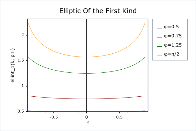 Returns the incomplete elliptic integral of the first kind F(φ, k):