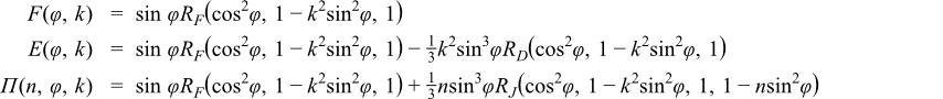 Carlson [Carlson77] [Carlson78] gives an alternative definition of elliptic integral's canonical forms: