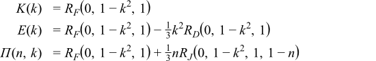 RC(x, y) = RF(x, y, y) RD(x, y, z) = RJ(x, y, z, z) |