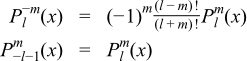 Negative values of l and m are handled via the identity relations: