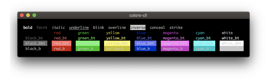 bold、 faint、 italic、 underline、 blink、 overline、 inverse、 conceal、 strike、