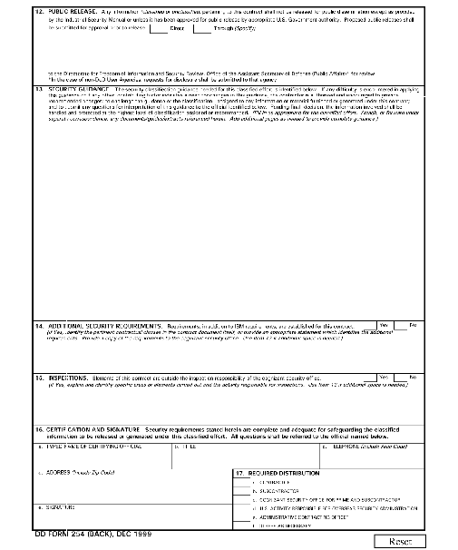 Form DD 254 (Reverse)