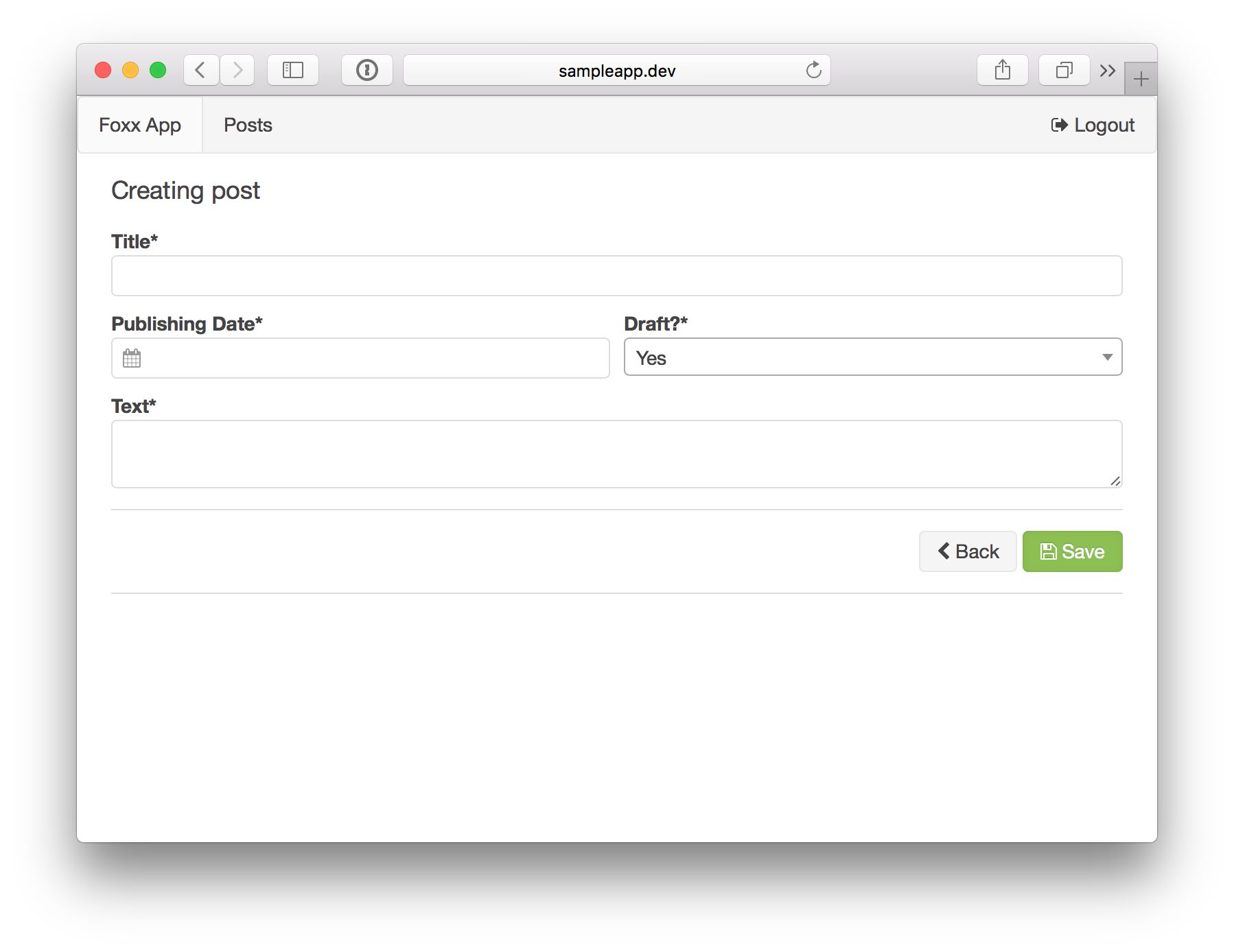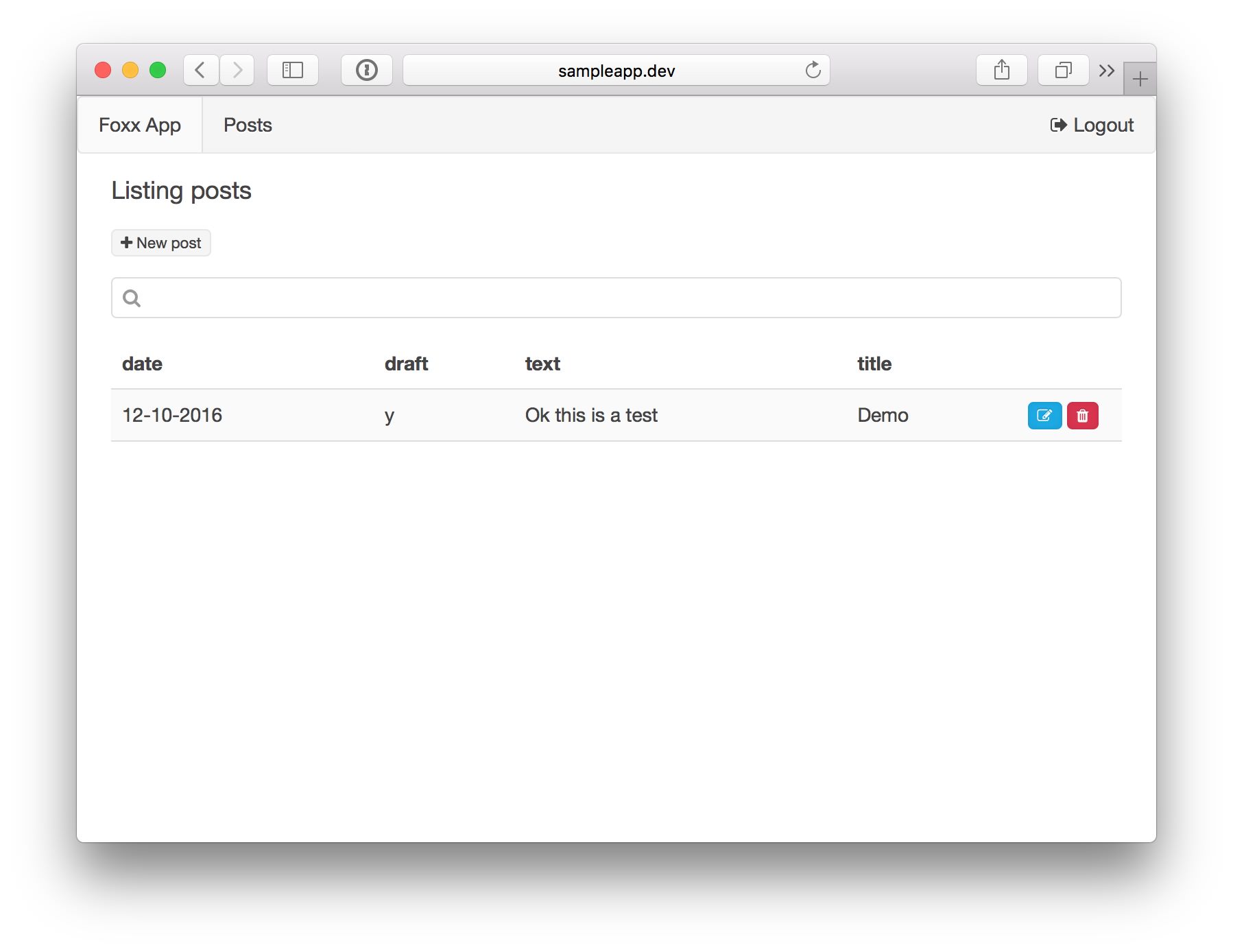foxxy new sample_app --database my_test_db