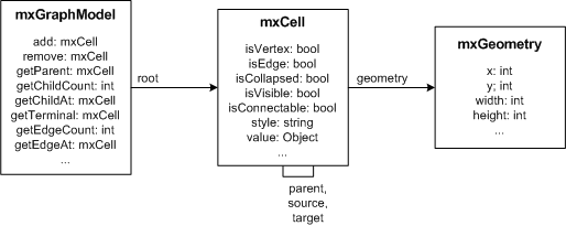 mxCell defines the elements of the graph model, which is implemented by mxGraphModel.
