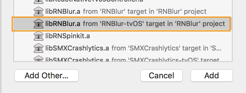 `react-native link` don’t works properly with the tvOS target so we need to add the library manually.