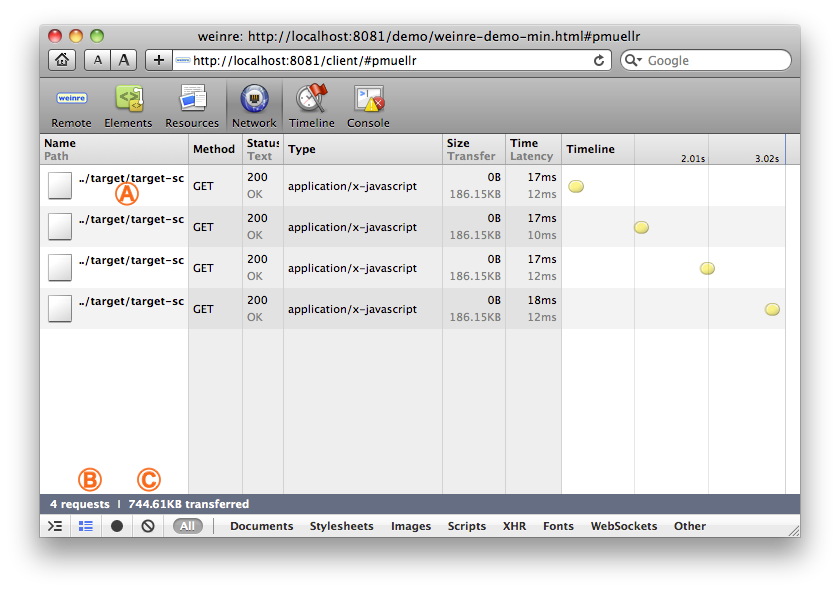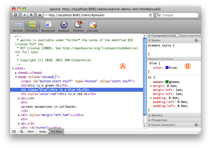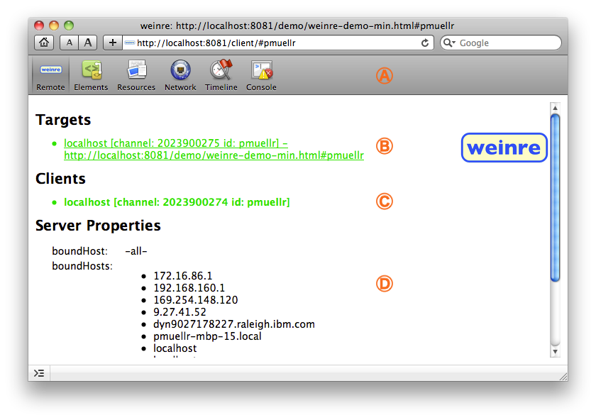 This page describes the user interface provided by weinre.